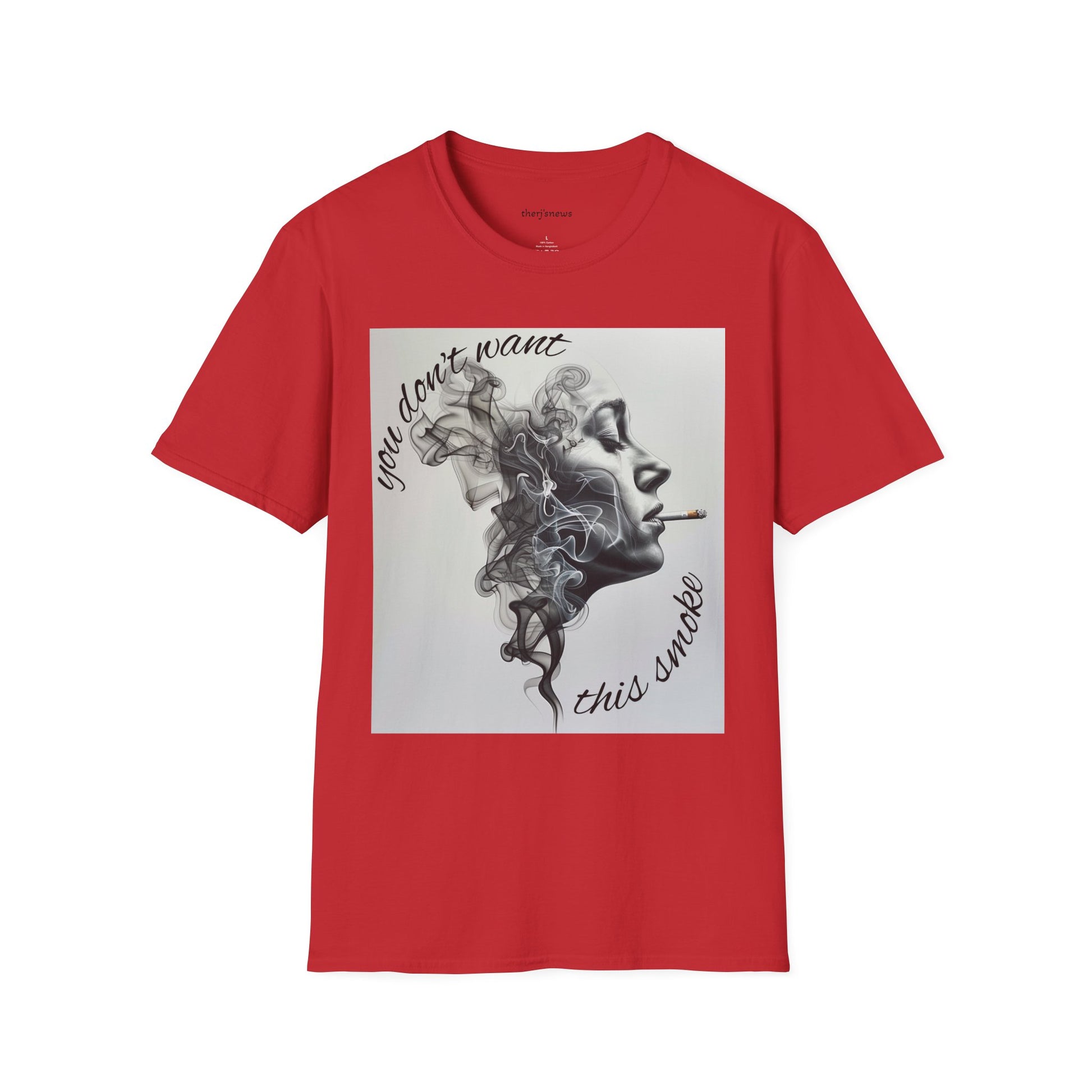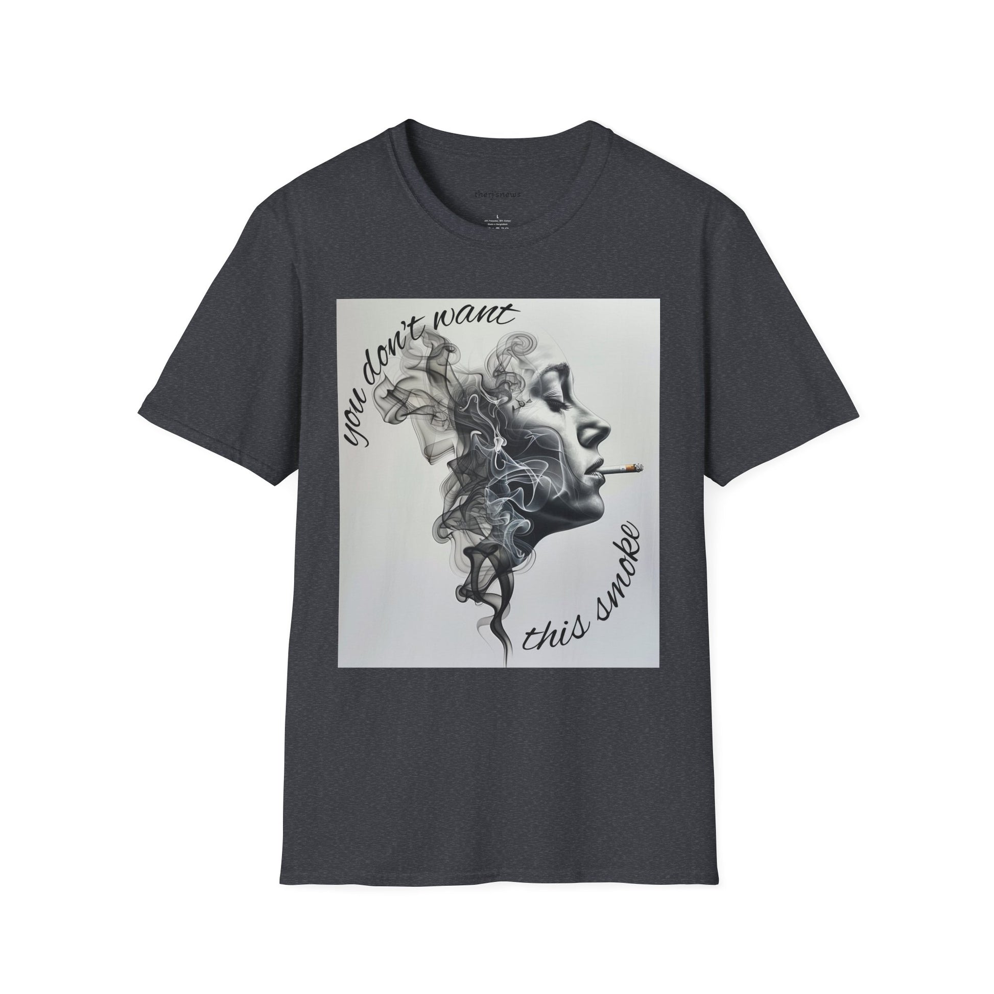 Stylish Unisex Softstyle T-Shirt with Smoky Artwork, Casual Wear, Gift for Smokers, Unique Graphic Tee, Statement Shirt, Trendy Apparel